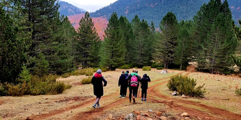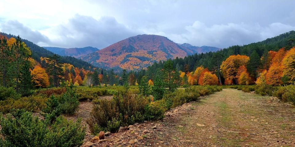 We will make a stop-over at the “Stavrós” location to enjoy a panoramic view over the valley. Upon reaching a natural spring (where usually the shepherds bring their flocks to drink water), you will realise that at this point the dirt road ends and we will follow the footpath. We will cross the valley of Valia Calda with its beautiful landscapes, its dense and rich vegetation, its towering pine trees and its rich fauna. One of the rare animals living here is the brown bear.